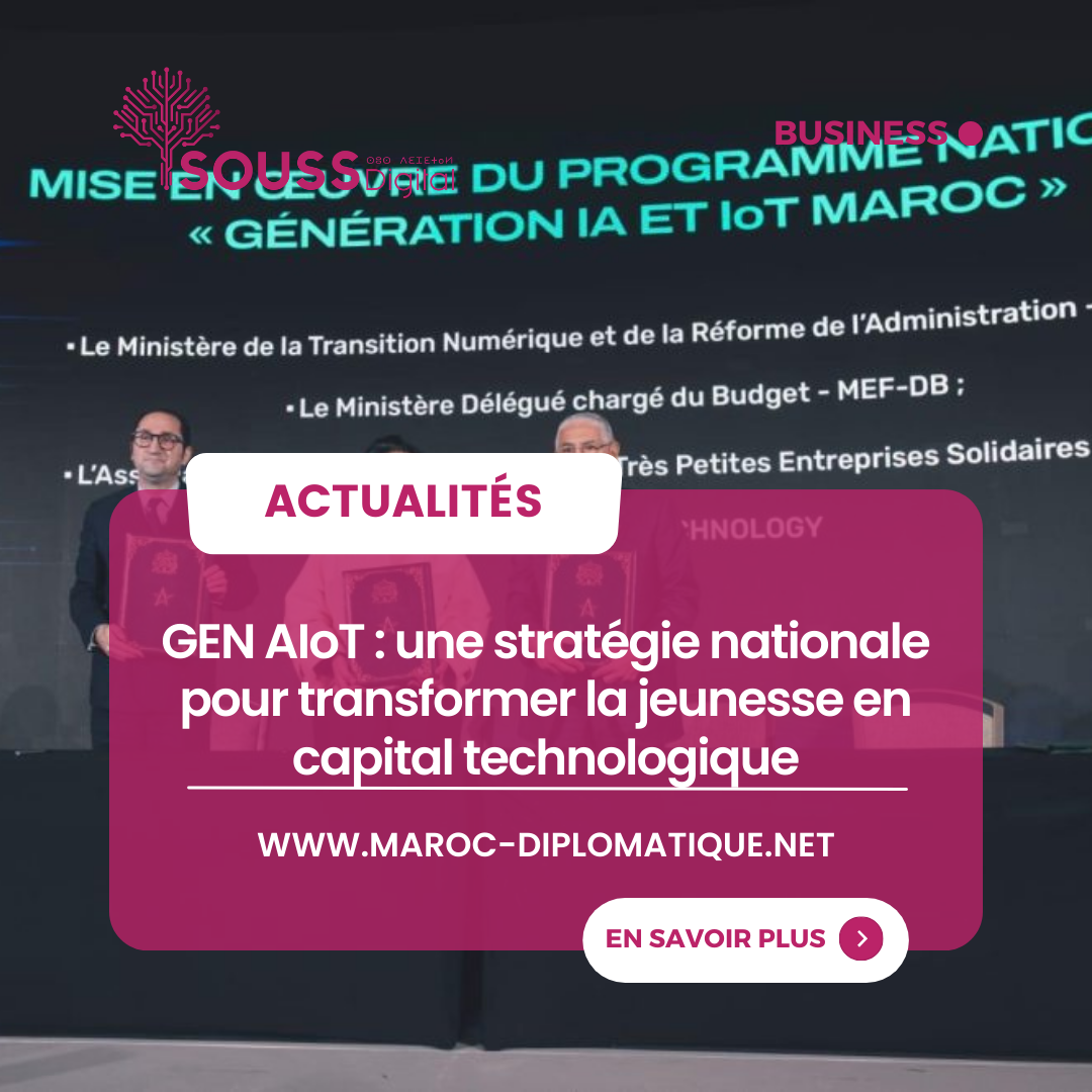 Avec GEN AIoT, le Maroc franchit une nouvelle étape structurante dans sa stratégie de développement des compétences numériques. Porté par le Ministère de la Transition Numérique et de la Réforme de l’Administration, en partenariat avec ABA Technology et l’Association des CTPES, ce programme national se positionne parmi les initiatives publiques les plus ambitieuses en matière de formation technologique orientée vers l’emploi.